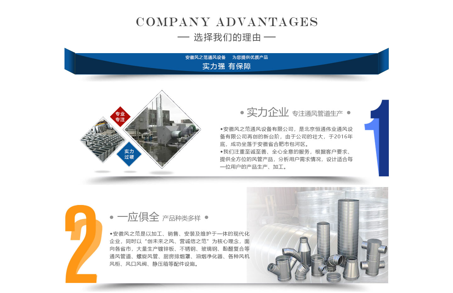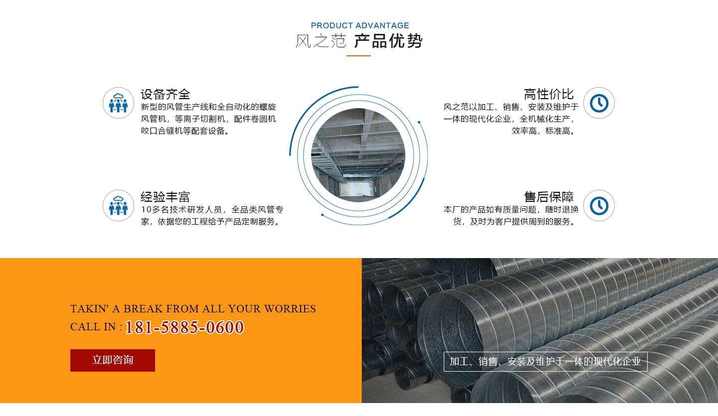 安徽風之范通風設備有限公司,是北京恒通偉業(yè)通風設備有限公司再創(chuàng)的新臺階,多年來,公司員工憑著“誠信敬業(yè)、團結拼搏、勇于開拓、務實進取”的企業(yè)精神,先后承接了多項重點工程項目,使公司健康穩(wěn)步發(fā)展。現(xiàn)由于公司的壯大,業(yè)務的拓展,又于2016年底,成功坐落于安徽省合肥市包河區(qū)。本公司生產(chǎn)設備精良,技術力量雄厚,質保體系完善!讓用戶體驗到,貼心的服務,無憂的售后!風之范是以加工、銷售、安裝及維護于一體的現(xiàn)代化企業(yè),同時以“創(chuàng)未來之風、營誠信之范”為核心理念,面向全國各省市,大量生產(chǎn)鍍鋅板、不銹鋼、玻璃鋼、酚醛復合等通風管道、螺旋風管、廚房排煙罩、油煙凈化器、各種風機風柜、風口風閥、靜壓箱等配件設施。廣泛承接商場、工廠、酒店、寫字樓、地下室等,消防排煙工程、除塵凈化工程、室內通風工程、暖通空調工程、廚房排煙凈化工程。我們力求上進,追求,歡迎各界人士技術指導,經(jīng)濟合作,共創(chuàng)美好明天!